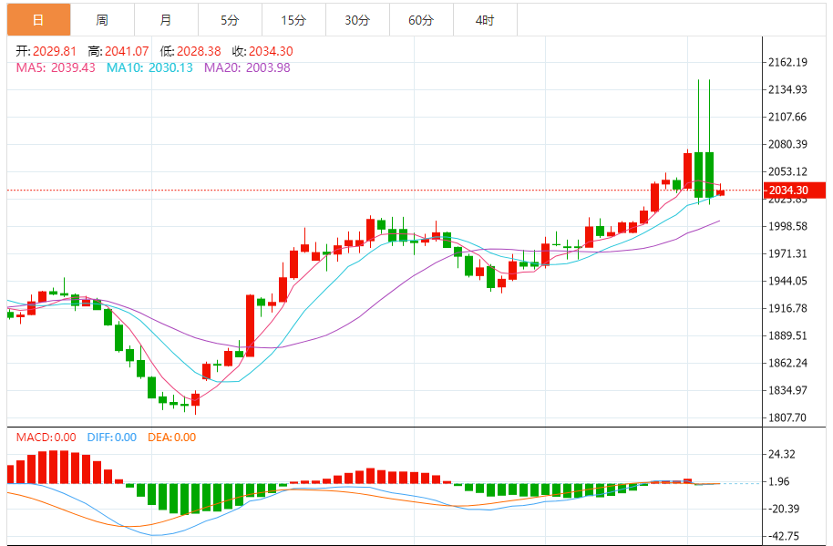 综合来看,黄金日内操作思路上建议上方短期重点关注2040-2050一线阻力,下方短期重点关注2010-2000一线支撑。