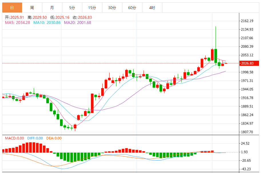综合来看,黄金日内操作思路上建议上方短期重点关注2040-2050一线阻力,下方短期重点关注2010-2000一线支撑。
