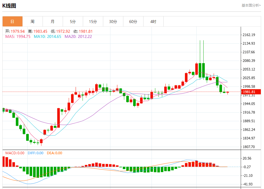 周三盘中,现货黄金报1984.84,涨幅0.28%。