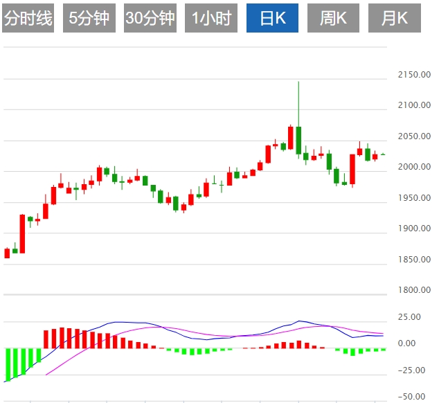 支撑位:2014.10美元/盎司;2003.90美元/盎司;1991.45美元/盎司