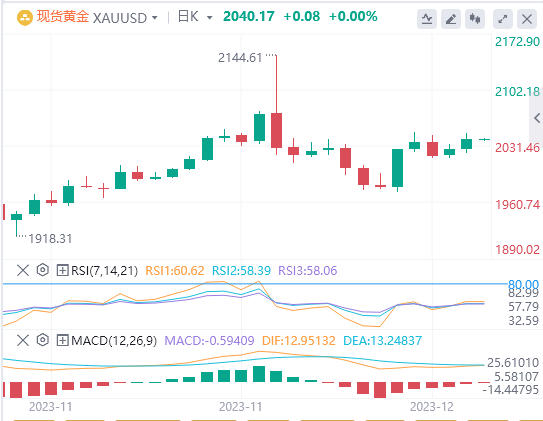 技术层面上,尽管金价上周五从近8日高点2048美元/盎司回落,但阻力最小的路径似乎仍是上行。从黄金日线图来看,只要14日相对强弱指数(RSI)保持在中线上方,且金价设法守住21日简单移动平均线(SMA)2016美元/盎司,金价上行空间仍存在。前期黄金反弹遇阻前高压力2048美元/盎司,同时也是4小时布林上轨压力位置,金价若突破此位置,可望继续挑战2065美元/盎司区域,对于金价恢复向2100美元/盎司心理位的升势至关重要。另一方面,如果金价日收市价低于21日移动均线,这将止住看涨情景,并推动汇价重回修正性看空轨道,并跌向50日移动均线1982美元/盎司,当然这种可能性目前看并不大。