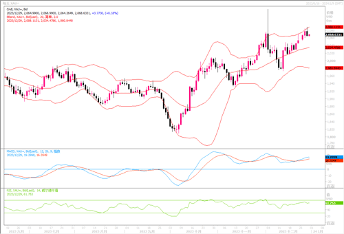 技术层面上,日K线图上,金价保持在布林带中轨线远上方,显示黄金多头尚能保持着优势。下方的支撑位置依次在2050和2035,不跌穿2050-2035的位置,就不会形成暴跌态势。4小时图上,技术指标暂时钝化,暗示多空都不会很强势和明显,布林带下轨道支撑位置上移到2055附近的位置,中轴压力位置2071附近,上轨道位置2085附近。综合起来看,在厘清新一年主要影响路径之前,本周黄金预料将暂时陷入窄幅区间交易模式,方向突破性机会不会太大。