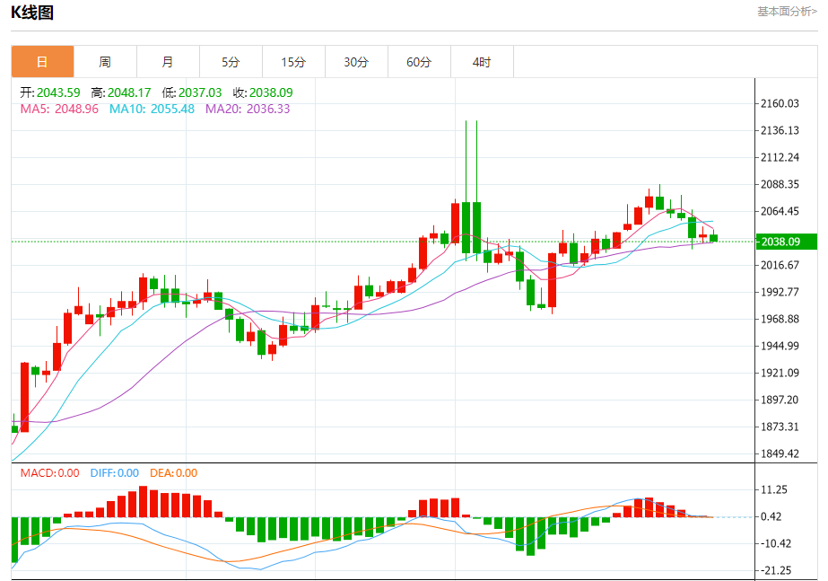 截止发稿,黄金价格现报于2037.93,跌幅0.25%。(亚汇网编辑:冰凡)