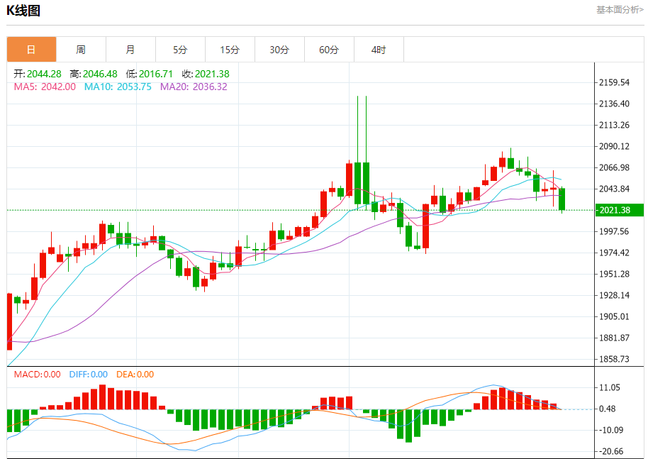 周一盘中,现货黄金报2022.68,跌幅1.09%。