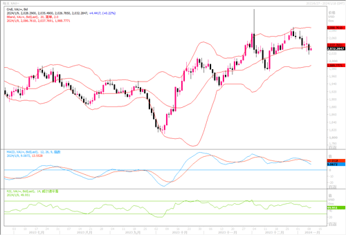 技术层面上,日线级别图上,2024年以来,金价一直在走低。金价目前低于20日简单移动均线和之前的水平支撑位2032美元/盎司;下一个支撑位预计在2014美元/盎司(50天简单移动均线),再下一个支撑位在之前的波动高点2009美元/盎司。如果行情要恢复走高,能否上破2043美元/盎司(20天简单移动均线和先前的水平阻力)成为关键点。