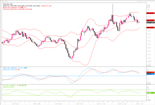 技术层面上,黄金日线图显示,金价下落于布林带通道中轨线之下,MACD平滑异同移动平均线形成死叉下摆,相对强弱指数(RSI)在49处提供一个看跌斜率,显示黄金仍呈下行风险。目前下方2020美元水平附近的支撑较为关键,若跌穿将进一步考验2000美元整数关口的支撑,进一步的强支撑在1980美元附近。而上行方面,只有收盘价企稳2043美元之上,或许才有望缓解年初以来的跌势。