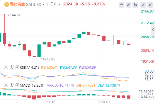 只要金价保持在21天简单移动均线(SMA)和50天均线(分别为2,045美元和2,015美元)之间,就有可能保持横盘势头。RSI指标位于中线下方,限制了黄金买家,而他们继续从上周五确认的牛市十字星中寻找支撑。100日均线上周五收于200日均线上方,确认了看涨交叉。如果反弹持续,近期阻力位在21日均线2,045美元处。金价的下一个看涨目标是上周五的高点2,054美元,在此高点之上,将重新打开测试2,100美元关口的大门。