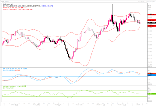 周三(1月10日),金价有所回落但幅度不大。当日现货金下跌0.4%,收盘于2,023.49美元/盎司。整体上,黄金在美国通胀数据前保持着窄幅波动,等待数据揭晓后的考验。