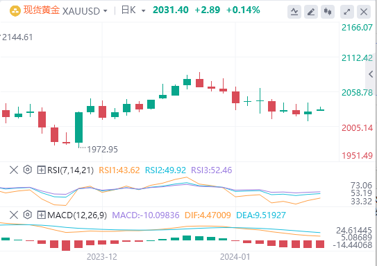 由于金价位于50日均线的支撑位,并且没有反转的迹象,因此在出现相反情况之前,金价有可能继续走低。跌破今日低点后,金价下一步将瞄准78.6%斐波那契回调位1998美元。