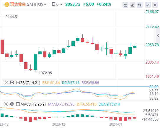根据芝加哥商品交易所集团的美联储观察工具,目前市场定价显示美国央行在3月份开始放松利率的可能性为78%,而一周前这一可能性为68%。美联储的鸽派预期仍然支持金价持续上扬。