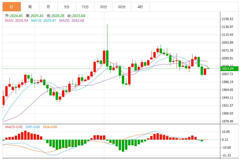 4小时图一波低位连阳反弹。反弹有持续性的空间配合,打破了弱势下跌节奏。目前在2000关口受到支撑走反弹,短线多空来回切换,宽幅震荡格调不改,并不是极弱的单边走法,美元稍有停滞,限制了黄金的单边动能。今日周线收官,还是看震荡思路,区间待欧盘后再行确认。目前小周期结构偏向反弹,但反弹的空间和动能多大还有待确认。日内结合形态灵活应对,以临盘为准。
