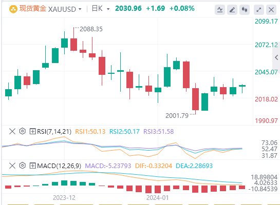 此前预计美联储降息的预期将提前开始,但现在面临延迟,影响了黄金的吸引力。尽管如此,地缘政治紧张局势加剧可能会为金价提供一些支撑,关键的2000美元水平被视为潜在的近期支撑。