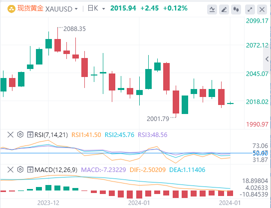 本周四将公布美国第四季度国内生产总值初值,预计将显示这个全球最大经济体的经济增长年率从上一季度的4.9%放缓至2%。周四的美国经济报告还包括耐用品订单和按照惯例公布的美国上周初请失业金人数,这可能会影响美元和金价。除此之外,备受关注的欧洲央行会议的结果也可能给市场带来波动,并产生短线交易机会。
