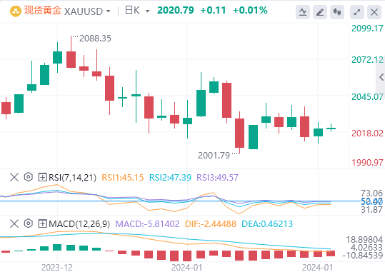 与此同时,追踪美元兑一篮子货币的美元指数在12月13日以来的最高水平附近徘徊,原因是美联储在2024年采取更激进的政策放松的可能性越来越小。这给金价带来了不利因素,尽管美国国债收益率的进一步下降以及对中东地缘政治紧张局势的持续担忧为避险贵金属提供了一些支撑。尽管如此,黄金/美元仍有望连续第二周下跌,现在将目光投向1月30日至31日的联邦公开市场委员会(FOMC)会议。