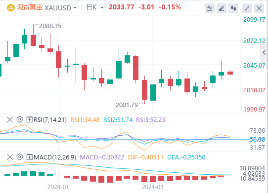 受美元和美国国债收益率走软的支撑,现货黄金一度触及1月16日以来的最高水平,但在职位空缺数据公布后抹去大多数涨幅,最终收涨0.19%,报2036.78美元/盎司。截至目前,黄金报价2033.77。
