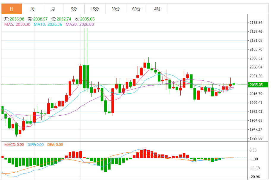 黄金探高回落,区间稍有上移,但持续性不强,上探2048.50一线承压,回归收盘在2040区间之内。日线收盘小阳十字K线,带有较长上影线,从日线的收盘情况来看,依旧是拉锯震荡,并没有持续性的单边突破,突破后没能站稳2040之上展开强力单边,日K线实体较小,短期局部依旧是收缩整理。