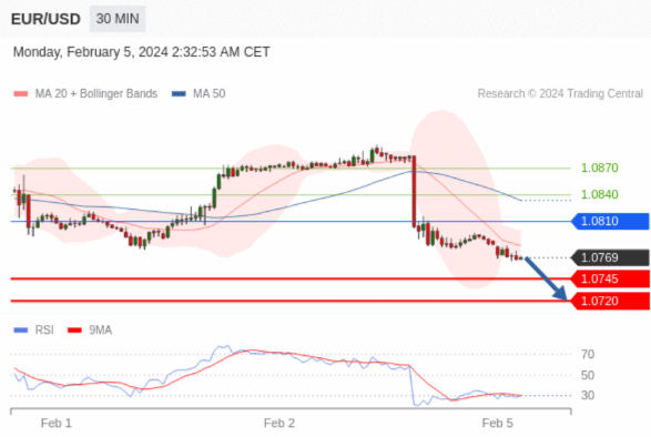 在 1.0810 之下,看跌,目标价位为 1.0745 ,然后为 1.0720 。