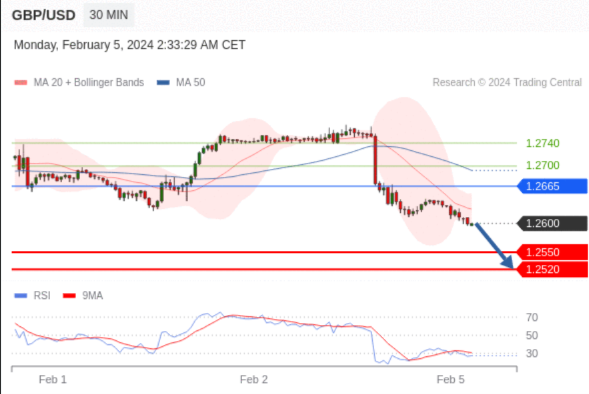 在 1.2665 之下,看跌,目标价位为 1.2550 ,然后为 1.2520 。