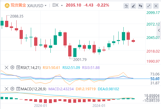 上周五,因非农数据远超预期,现货黄金盘中跌破2030美元/盎司, 较日高下跌约30美元,随后稍有回升,截至目前,黄金报价2035.1。