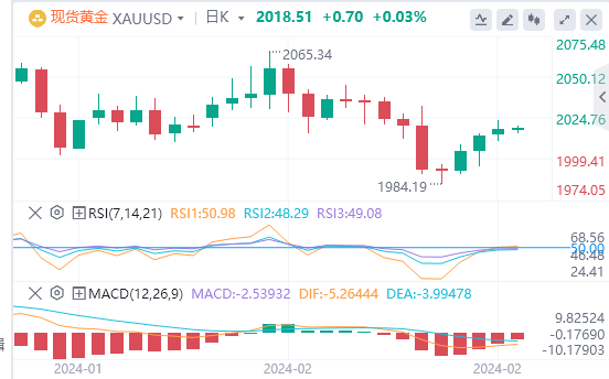 不过,黄金卖家在测试上升趋势线支撑位2005美元和100天均线2000美元之前,需要突破前一天的低点2011美元。上行方面,需要突破21日均线2023美元相邻阻力位,才能继续反弹接近50日均线2033美元。若金价突破该水平将为金价带来新的买入机会,指向2月7日的高点2044美元和2050美元心理关口。
