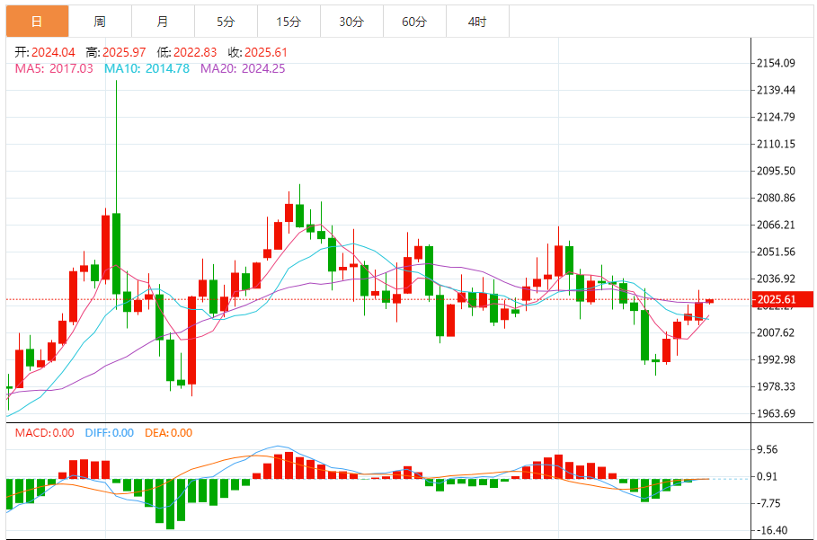 综合来看,黄金日内操作思路上建议上方短期重点关注2030-2035一线阻力,下方短期重点关注2015-2010一线支撑。