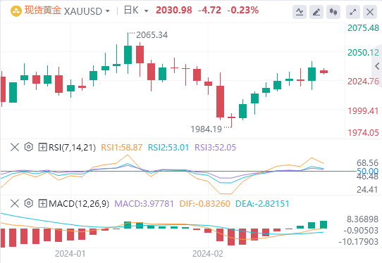 现货黄金上演“深V”反弹,盘中一度逼近2015关口,但随后因美元疲软和中东紧张局势升级带来的避险需要大幅回升,收复全部失地并突破2035大关,最终收涨0.55%,报2035.56美元/盎司.截至目前,黄金报价2030.98。