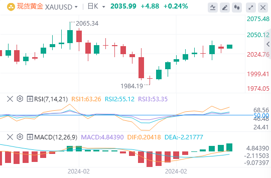 与此同时,相对强弱指标正指向中线上方。在潜在的看涨指标中,金价的下一个上行目标似乎是两周高点2041美元。进一步上行方面,2050美元的心理关口将成为上行目标。