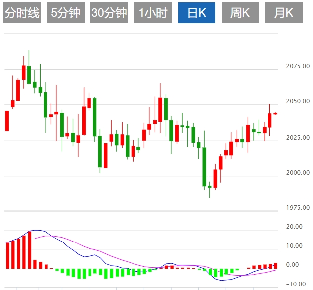 技术上,黄金微幅走扬显示大宗商品市场稳定。枢轴点位于2038.05美元,表明关键阻力位为2050.76美元、2065.30美元和2079.03美元,可能会限制上涨势头。