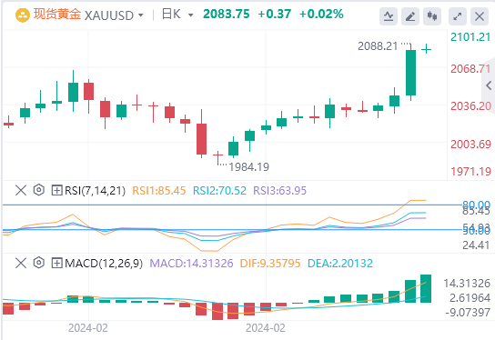 从技术角度来看,周五突破2062-2064美元水平关口被视为看涨交易者的新触发因素,并支持进一步上涨的前景。也就是说,日线图上的相对强弱指数(RSI)徘徊在超买区域附近,阻碍了多头进行新的押注。因此,谨慎的做法是等待一些短期盘整,然后再为延续近三周的上升趋势做好准备。