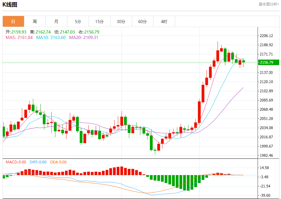 ÖܶþÅÌÖУ¬ÏÖ»õ»Æ½ð±¨2157.01£¬µø·ù0.15%¡£