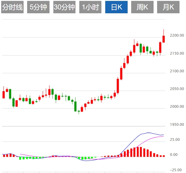 本轮多头上升的出现,并不仅仅是因为美联决议,它只是催化剂,加速了行情的运行。本周在第一次测试2146美元后就已经出现端倪,短暂触及后小时线连续收阳,切上破当日白盘高点,接下来的一个交易日盘面价格虽有再次下探动作,但快速的探底回升,日线收出长下影阴线,下方支撑明显,下跌阻力重重,跌得快涨的也快,明显不是良性下跌,随着回踩低点上移,盘面的修正形态不再是震荡下跌,而是收敛三角,多头在逐步掌控局势,最终上破压力线,得以爆发。