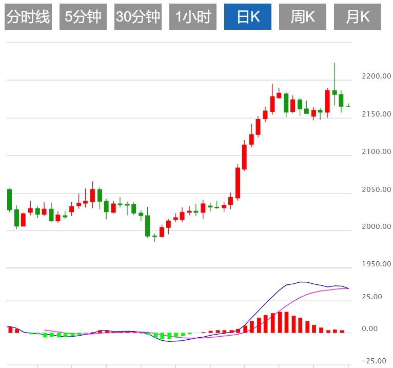 目前金价上方首个阻力位在2185美元/盎司,接下来的阻力位于2200美元/盎司(上升通道的上限)和2223美元/盎司(历史高点)。