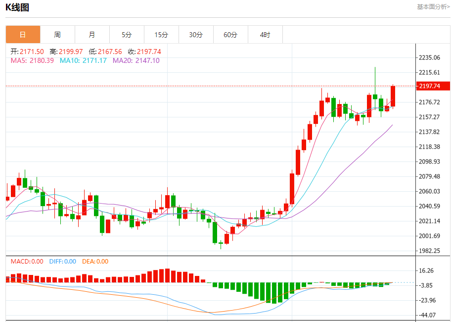 ½ØÖ¹·¢¸å£¬»Æ½ð¼Û¸ñÏÖ±¨ÓÚ2197.69£¬ÕÇ·ù1.20%¡££¨ÑÇ»ãÍø±à¼£º±ù·²£©