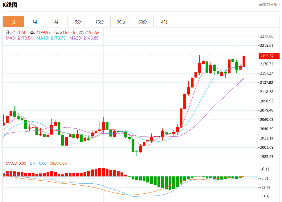ÖܶþÅÌÖУ¬ÏÖ»õ»Æ½ð±¨2193.81£¬ÕÇ·ù1.02%¡£