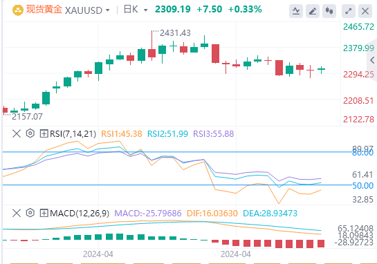 黄金的第一个上行障碍将出现在100日均线附近2,318美元。如果果断突破上述水平,将在短期内恢复积极的前景。下一个障碍出现在2,350美元至2,355美元区域,描绘了4月26日高点和下降趋势通道的上边界的汇合点。高于该水平的看涨突破将使2,400美元大关升至2,432美元附近的历史高点。