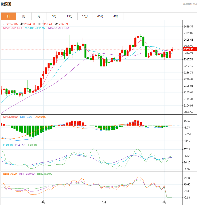 周三(6月5日),金价回升逾1.2%,收盘报每盎司2355.49美元,全面收复前一交易日的跌幅。