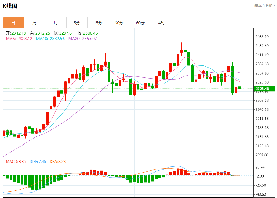 截止发稿,黄金价格现报于2306.36,跌幅0.19%。(亚汇网编辑:冰凡)