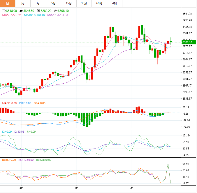 MACD 金叉初建,灵动指标 STO 向上运行至超买区域,同样表明价格处于高位震荡。当前支撑在均线 MA5 和 MA10 附近,对应 3327.5 - 3320.5 美元一线 。