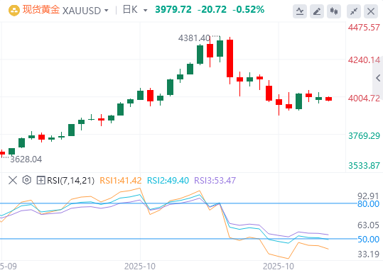 交易员反应迅速,目前预计12月9日至10日联邦公开市场委员会(FOMC)政策会议降息的可能性约为65%,这继续推动资金流向美元,并促使围绕无收益黄金进行新的抛售。然而,美国政府长期停摆带来的经济风险可能会限制美元。