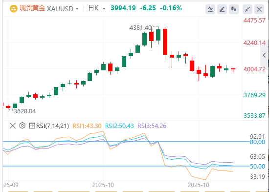 交易员反应迅速,目前预计12月9日至10日联邦公开市场委员会(FOMC)政策会议降息的可能性约为65%,这继续推动资金流向美元,并促使围绕无收益黄金进行新的抛售。然而,美国政府长期停摆带来的经济风险可能会限制美元。