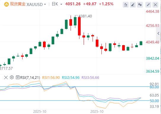 持续交投于10月22日高点4161美元上方可能会将黄金推向4200美元的心理水平。再往北,下一个值得关注的障碍是布林带的上限4325美元。