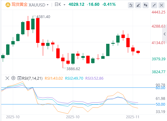 另外,美元指数近期从两周低点反弹后连续两日走高,目前交投于99.42附近。国际现货黄金同时面临逆风,美国政府停摆结束以及全球贸易紧张局势缓和削弱了其避险吸引力。不过持续存在的地缘政治和经济风险仍使整体前景偏向乐观。
