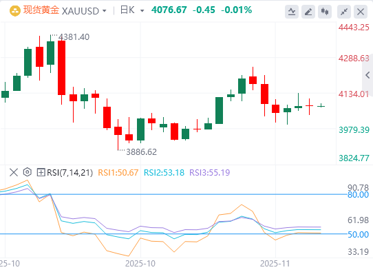 现货黄金区间震荡,美盘再度触及4100美元/盎司,但随后回落,截至目前,黄金报价4076.67。