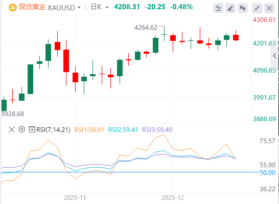 12月11日,黄金在亚洲盘段小幅上涨至4247美元左右或创下一周新高后回落,目前似乎已经结束了两天的连胜。整体积极的风险基调,加上美元(USD)从10月24日以来最低点出现温和反弹,成为削弱避险贵金属需求的关键因素。话虽如此,美联储(Fed)鹰派的展望可能会抑制美元反弹的尝试,并帮助限制这种无收益黄金的下行空间。
