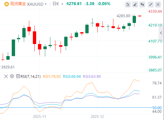 美联储周三通过分裂投票决定将利率下调25个基点(bps),使利率区间介于3.50%至3.75%之间,为三年来最低水平。较低的利率可以降低持有黄金的机会成本,从而支持这种无收益的贵金属。