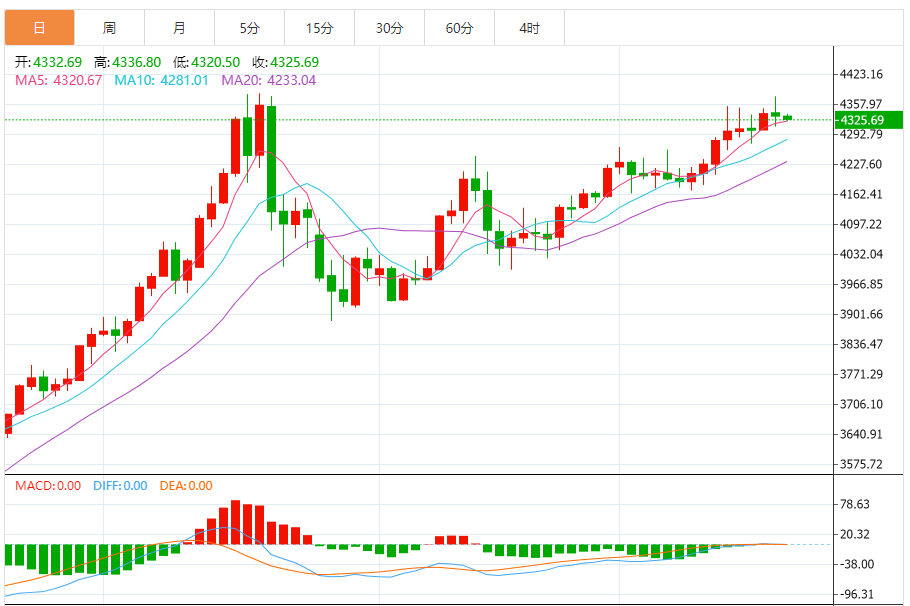 周五(12月19日),现货黄金目前位于4325.88美元/盎司附近,跌幅为0.16%。