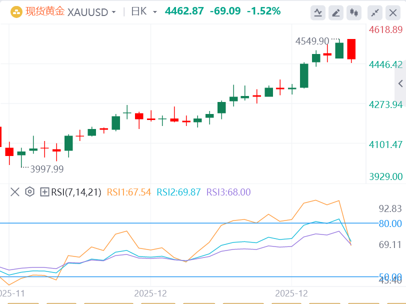 黄金行情走势展望:黄金从4550美元的历史高点回落 并测试支撑位在4445美元区域
