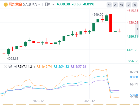 另一方面,黄金的初始支撑位出现在4,305-4,300美元区间,代表12月29日的低点和整数值。更强的回调可能将黄金拉向12月16日的低点4,271美元。