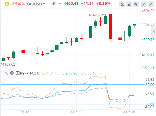 随着委内瑞拉局势增强了贵金属的避险吸引力,现货黄金高开高走,一度站上4450美元关口,创一周新高,截至目前,黄金报价4460.41。