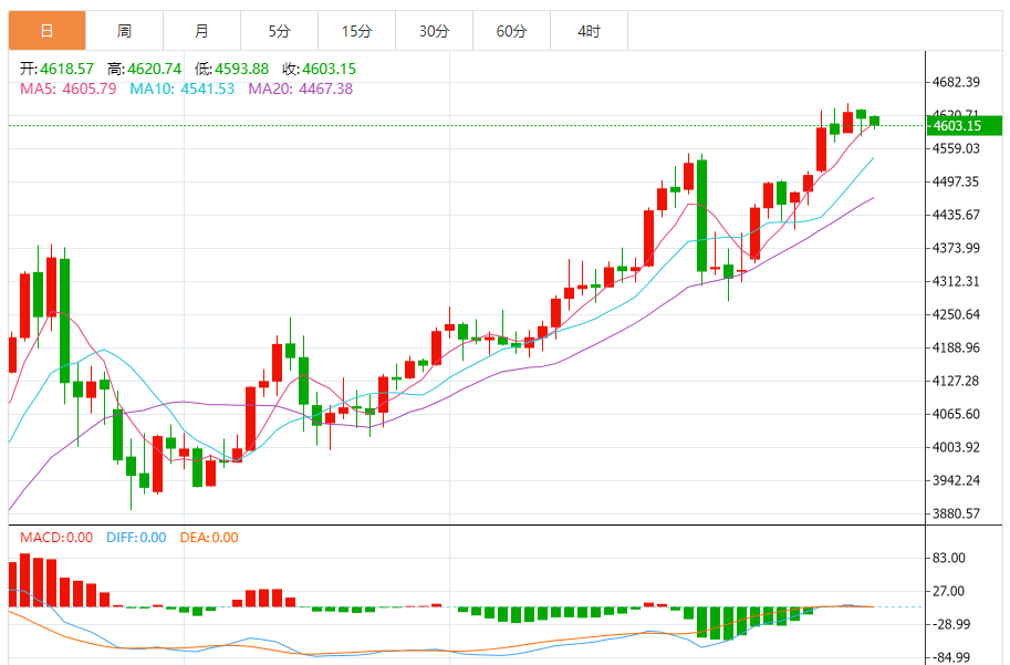 周五(1月16日),现货黄金目前位于4602.79美元/盎司附近,跌幅为0.28%。